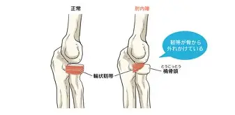 これは別名 肘内障と言い、小さいお子さんが親に手を引っ張られるなど急激に腕が引き伸ばされた際に肘周りの靭帯がずれてしまうケガです。