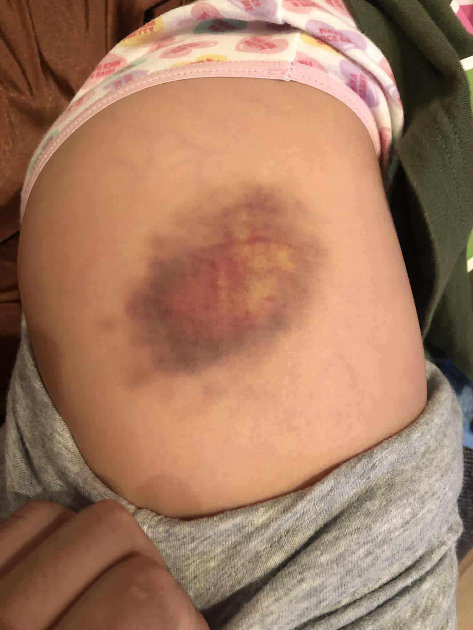 内出血がひどい場合には、数日〜1ヶ月程度青あざが残ることもあります。